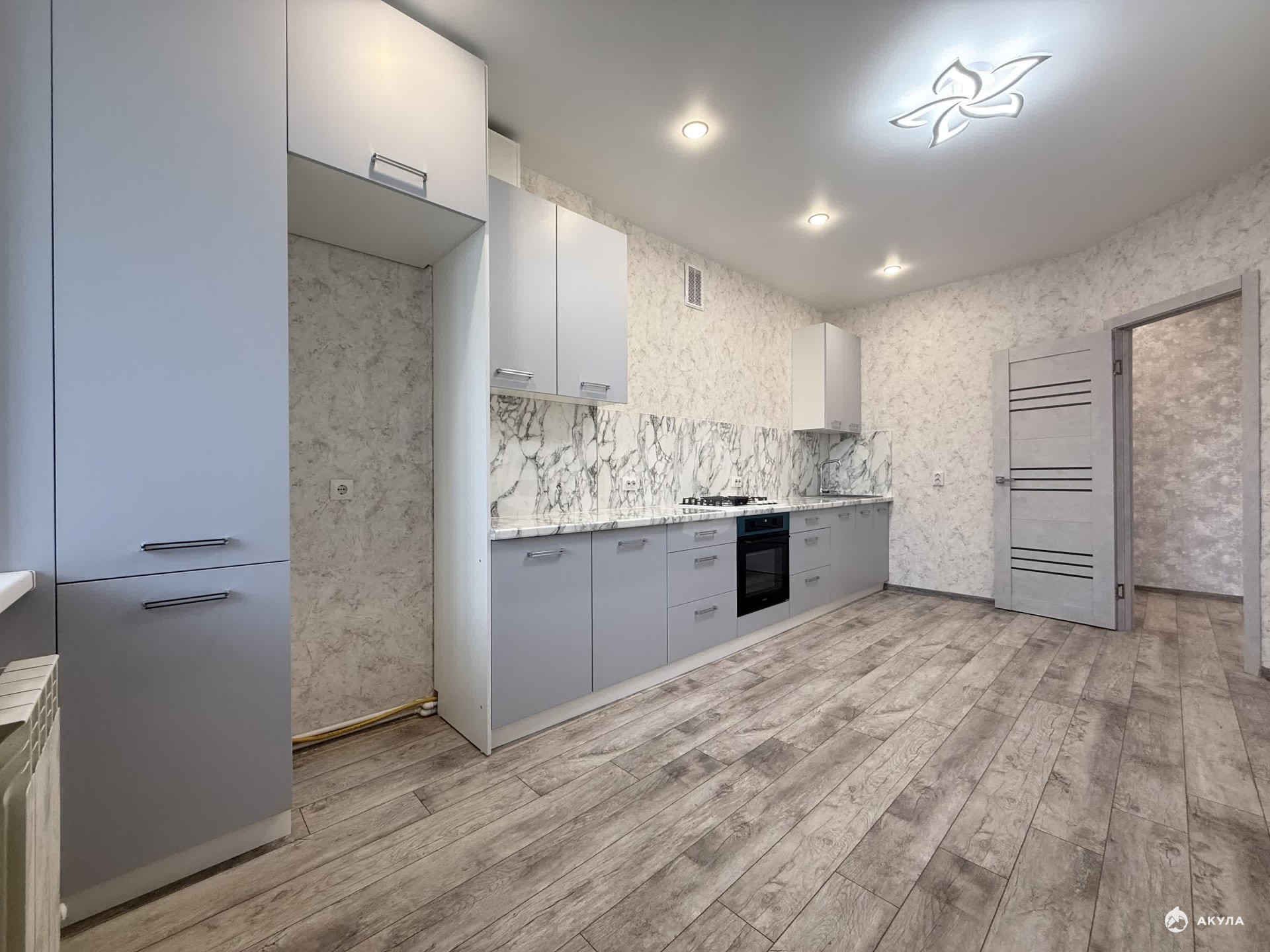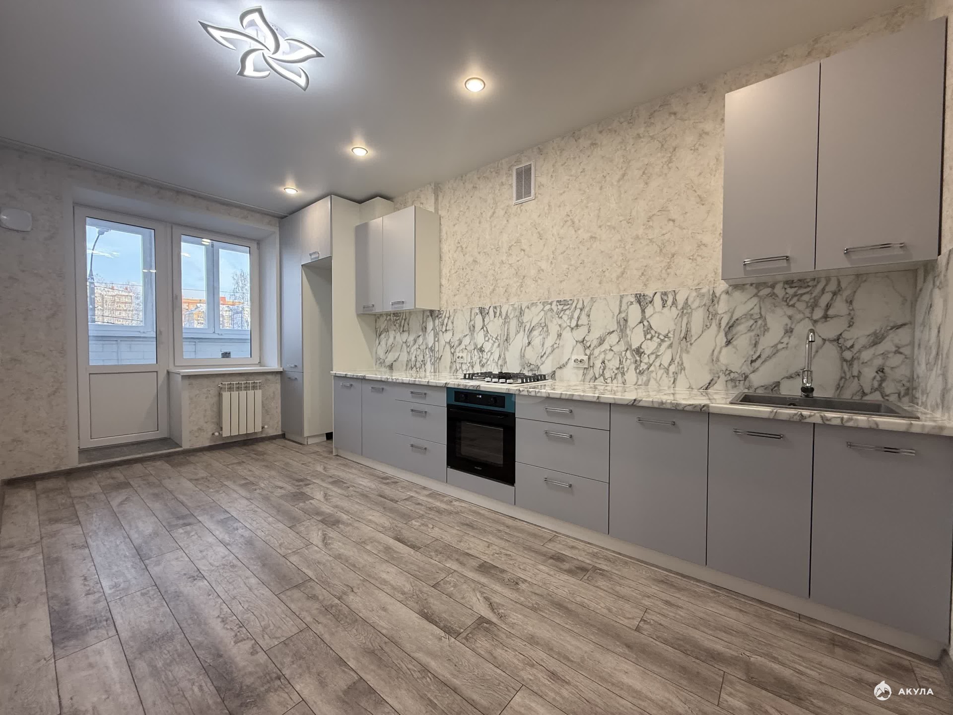 - Комфортная кухня, огромной площади и формы. на которой уже установлен отличный и вместительный кухонный гарнитур, понравится любой хозяйке! Данную кухню можно использовать как кухню гостиную.