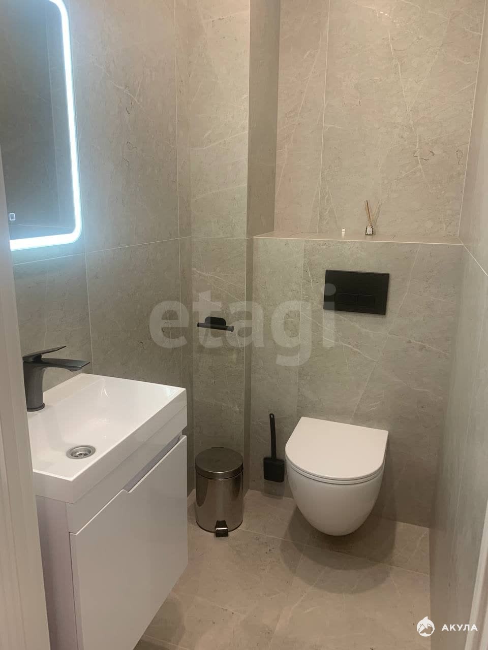 - Сантехника фирмы АМ-РМ на гарантии в 10 лет, в ванной комнате специальная ниша под стиральную и сушильную машину. Тёплый пол, дорогой керамогранит , устойчивый к воде.
