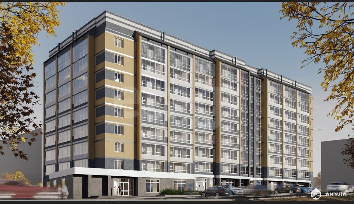 Новый дом с закрытой придомовой территорией. Во дворе дома детская площадка и парковочные места.