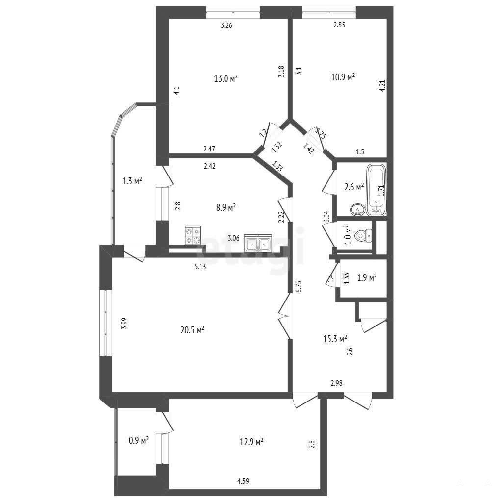 - 8.9 м²