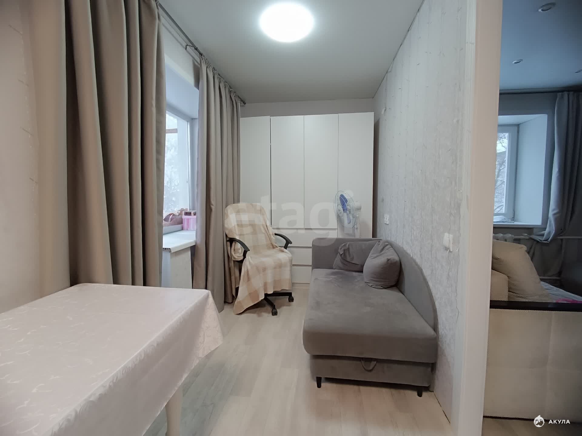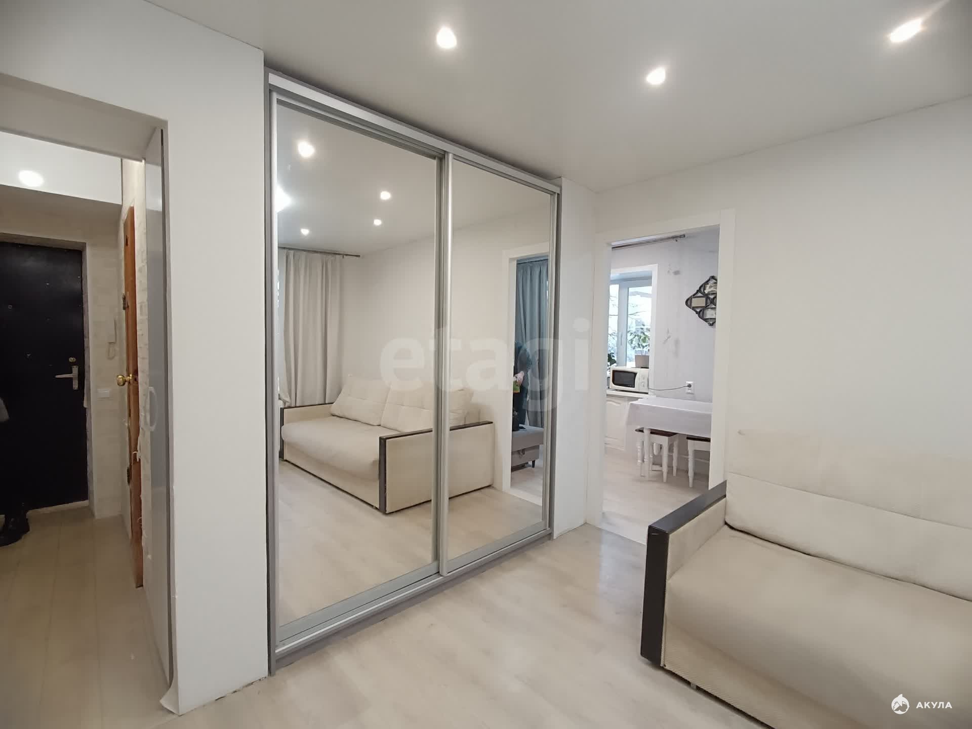 Квартира полностью готова к заселению и частично меблирована: в ней остаются мягкая мебель, встроенные системы хранения., холодильник, плита, микроволновка. За счет нестандартной планировки кухни-гостиной существует возможность организации дополнительного спального места, что эффективно увеличивает жилое пространство. Состояние помещения хорошее, проведен косметический ремонт.